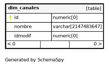 | dim_canales_pkey | Primary key | Asc | id |