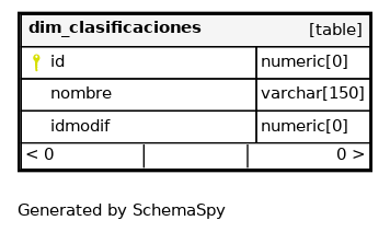 | dim_clasificaciones_pkey | Primary key | Asc | id |