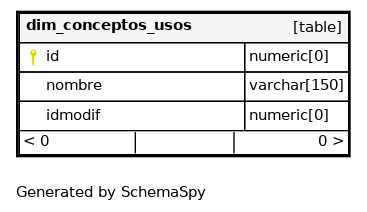 | dim_conceptos_usos_pkey | Primary key | Asc | id |