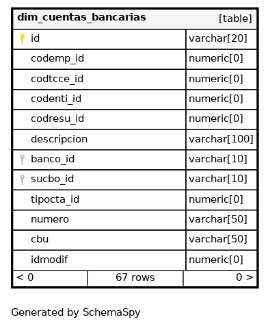 | dim_cuentas_bancarias_pkey | Primary key | Asc | id |