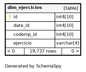 | dim_ejercicios_pkey | Primary key | Asc | id |