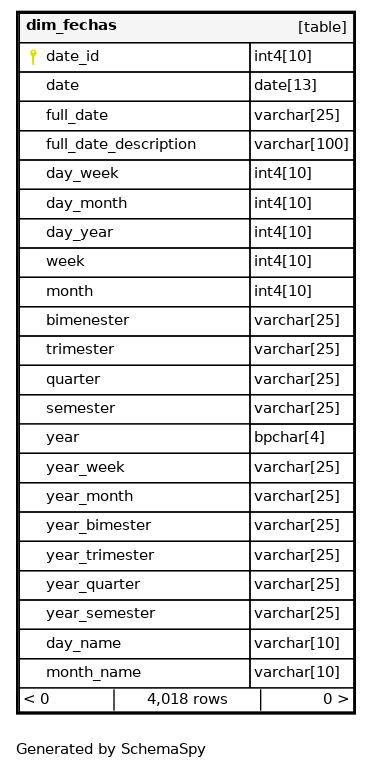 | dim_fechas_pkey | Primary key | Asc | date_id |