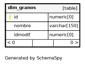 | dim_granos_pkey | Primary key | Asc | id |