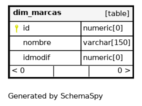 | dim_marcas_pkey | Primary key | Asc | id |