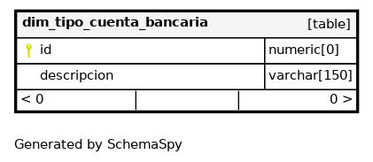 | dim_tipo_cuenta_bancaria_pkey | Primary key | Asc | id |