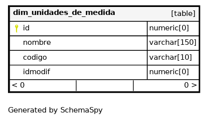 | dim_unidades_de_medida_pkey | Primary key | Asc | id |