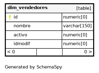 | dim_vendedores_pkey | Primary key | Asc | id |
